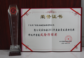 2014年2月,四川省融资担保业协会开展“2013年度会员发展特色奖”评选活动,在200家会员单位中评选出8个奖项29名获奖单位。我市政策性融资担保公司广信担保2013年服务支持企业134户,贷款担保9亿元,未发生代偿,被评选为“2013年度风险防控奖”获奖单位。