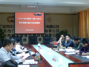 4月18日,金融服务集团组织全体党员干部学习了《中共广元市委关于全面深化改革的意见》,贯彻落实市委六届八次全会精神。会议要求大家深刻领会和牢牢把握我市国有企业改革发展的方向,抓住市委深化金融和投融资改革的契机,搞好小额贷款、融资担保、创业投资业务,积极拓展融资租赁业务,做强做大金融服务集团。