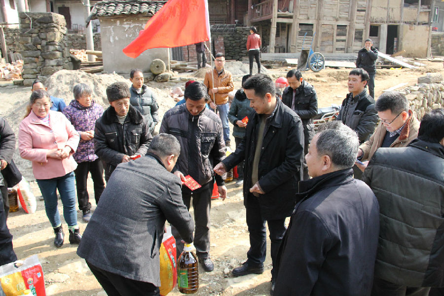 2015年2月13日,在羊年新春佳节来临之际,市金融服务集团党支部书记、董事长李仕平带领支部成员、子公司负责人和帮扶工作组的同志深入青川县白家乡白果村开展扶贫慰问活动,为白果村的23户困难群众、残疾人送去慰问物资和慰问金。