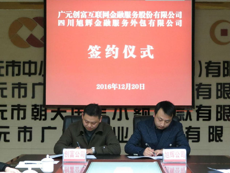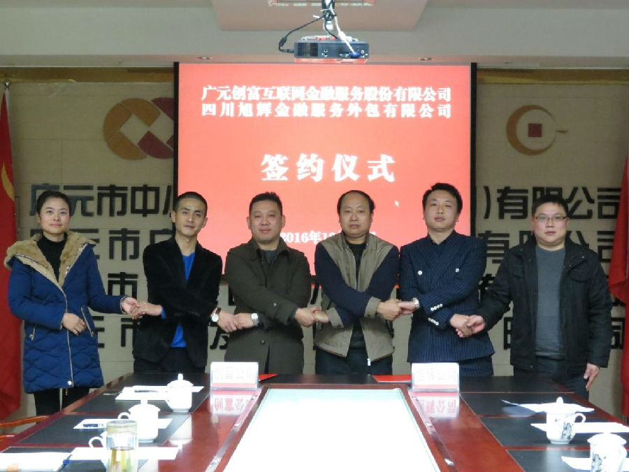 为贯彻落实中央、省、市有关国企改革意见精神,进一步推进大众创业,万众创新,着力解决小微企业“融资难”、“融资贵”等瓶颈问题,12月20日,广元创富互联网金融服务股份有限公司与四川旭辉金融服务外包有限公司正式达成战略合作。双方的合作,将最大限度的发挥国企品牌影响力和民企市场资源优势发展普惠金融,更好地服务我市小微企业。