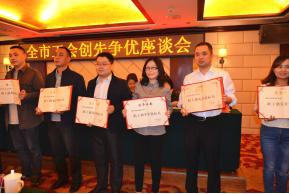 5月5日,全市创先争优表彰会在市总工会职工培训中心三楼会议室隆重召开。会上,市总工会副主席李自民宣读了工人先锋号和创先争优标兵表彰文件,市总工会领导向获奖单位和个人颁发了奖状奖牌。