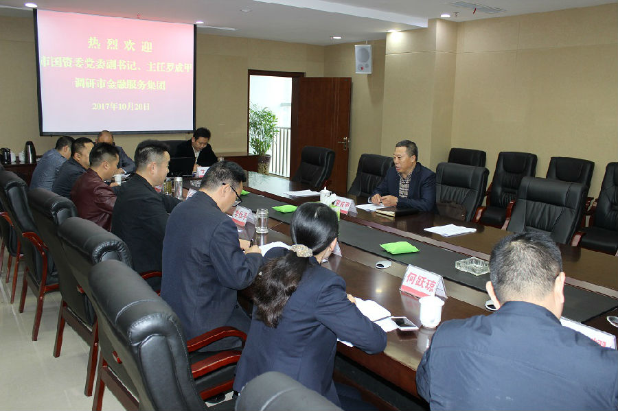 10月20日上午,市国资委党委副书记、主任罗成甲深入市金服集团调研。