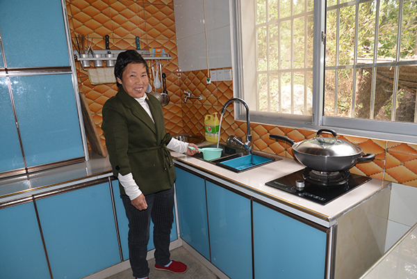 村民张茂雪说,她嫁到这里三十多年了,吃水一直很恼火,一年四季,不管是农忙,还是下雨阴天,都得到山里排队挑水、抬水。不仅吃水这样难,就是吃点青菜,也是这样难,看看每家院子里光秃秃根本见不到菜苗瓜果类的庭院作物。这两年,天旱了,山泉水也少了,要等到一两个小时才能舀到一桶水。现在自来水接到了自家的缸里、锅里,这在前几年想都不敢想。过去由于缺水,村里人特别节约用水,一盆水要重复利用好几次,现如今有了水,人们可以用干净的水洗脸,洗衣服了。以后想在院子里种点青菜不成问题了,想吃啥就种啥。