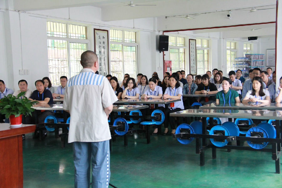 在监狱工作人员的带领下,实地参观服刑人员劳动改造场所、生活区教育区,现场服刑人员忏悔报告。身临其境的警示教育,让每位干部职工的心灵受到极大的震撼。