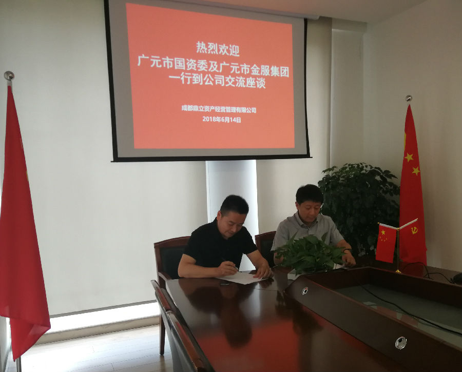 座谈中,张晓峰着重介绍了广元国资国企改革、国企债务等基本情况; 双方企业分别介绍了基本情况,业务运营模式,就下一步开展业务合作进行了广泛探讨,并达成了如下合作内容:一是建立信息资源共享平台和业务交流机制,成都鼎立资管公司为广元资管公司(筹建)设计业务运营模式及流程,培训业务人员;二是开展业务合作,双方共同出资和出人参与不良资产项目收购、管理、经营和处置,实现双赢;三是在时机成熟时,对现有业务板块或业务链条延伸板块开展股权合作;四是鼎立公司为广元金服集团服务对象开展融资咨询、项目对接等增值服务;五是鼎立公司为广元资管公司收购不良资产等融资方面,推荐资方机构对接。双方现场签订了《业务合作框架协议》,均表示双方合作以各自资源优势为基础,以维护地方金融生态稳定为基础,以实现双方共赢和社会协调发展为目的。同时,周江就设立鼎立资管公司广元分公司等具体事宜,将于近期至广元调研。