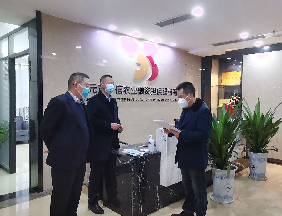 叶东升调研员听取了广信担保公司董事长姚光耀疫情防控工作汇报,现场查看了来访登记簿。对广信担保公司在疫情防控制度落实、措施落实、人员落实方面给予了充分肯定。他提出:一是要深刻认识当前疫情防控工作的严峻复杂形势,始终绷紧疫情防控这根弦;二是要压紧压实疫情防控主体责任,做到“谁失控、追谁责”,在切实做好来访登记、测温、亮码的同时,还要做好环境消杀工作。三是加强防控政策宣传,切实做到全员知晓、全员遵守,推动形成群防群控、联防联控格局。
