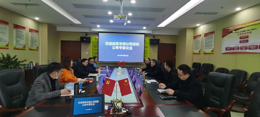 近日,自贡市农担公司董事长华才敏一行5人来广信担保公司考察交流,公司董事长、总经理姚光耀,副总经理鲁恭军,风险总监贺汉斌及有关部门负责人参加座谈。