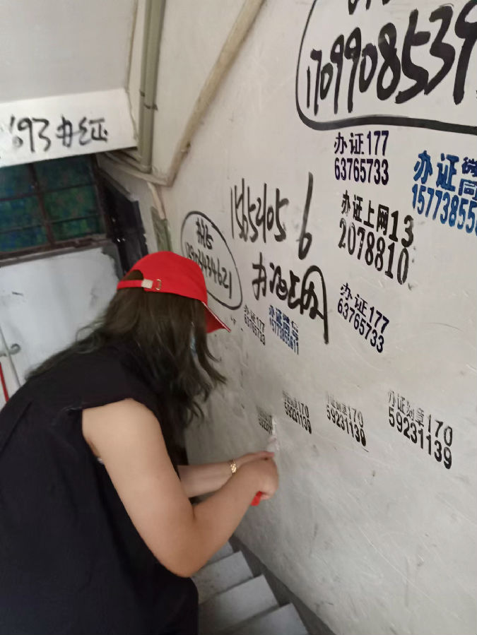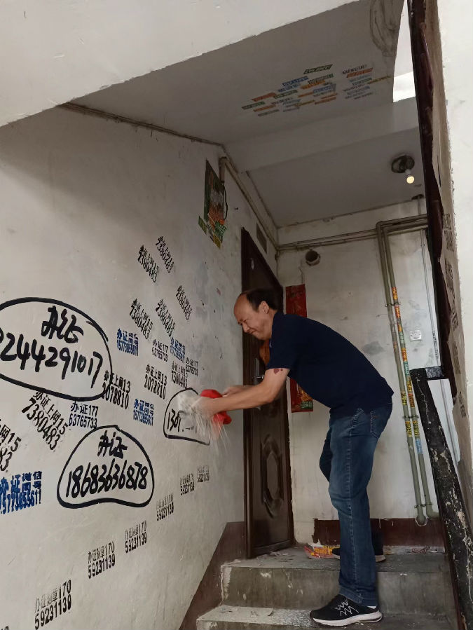为营造干净整洁的生活环境,更好地助力全国文明城市创建,7月9日,市金服集团机关支部、国联金信公司党支部联合南鹰社区工作人员开展“我为群众办实事,专项铲除牛皮癣”志愿服务活动。活动中,志愿者们冒着酷暑采用铁铲、砂纸、涂抹法等多种方式,力争做到全面清除“牛皮癣”不留死角,逐一铲除楼道单元门、墙面、楼梯扶手的“牛皮癣”,清洁卫生死角,清理暴露垃圾,同时向过往居民宣传不要乱扔垃圾、保护整洁环境、爱护公共设施等文明行为,为维护辖区的环境卫生尽一份心、出一份力,以实际行动为创建全国文明城市出力。