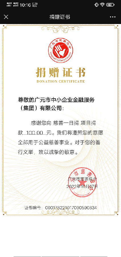 为积极响应广元市慈善总会号召,推动我市慈善事业高质量发展,助力广元创建全国文明城市,2022年10月17日,市金服集团组织开展“慈善一日捐”活动,公司全体干部职工踊跃参加,慷慨解囊,以实际行动表达对慈善事业的一片热忱,传递助人为乐的正能量。
