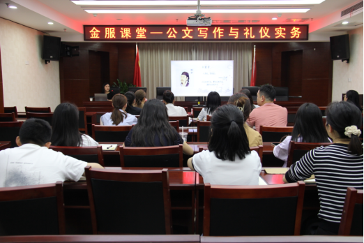 为进一步提高职工综合素质能力,全面提升集团综合工作质效,根据集团“五新行动”工作方案,继召开金融科技知识、信息办理工作讲座后,4月19日,“金服课堂”再次举办内容为公文写作和礼仪实务的学习交流讲座。此次培训邀请市法院吴狄珊、周夕渃进行了授课,来自各部门的职工积极参与,气氛热烈。