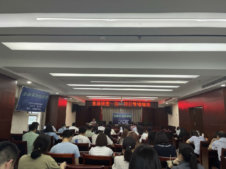 为贯彻落实《广元市2023年“美好生活·民法典相伴”主题宣传月实施方案》,持续提高职工综合素质能力,全面提升广大干部职工的法治素养和依法合规经营管理能力, 6月15日,“金服课堂”再次开讲,此次邀请了四川力发律师事务所王江飞律师进行法律知识授课,集团母子公司全体职工参加培训。