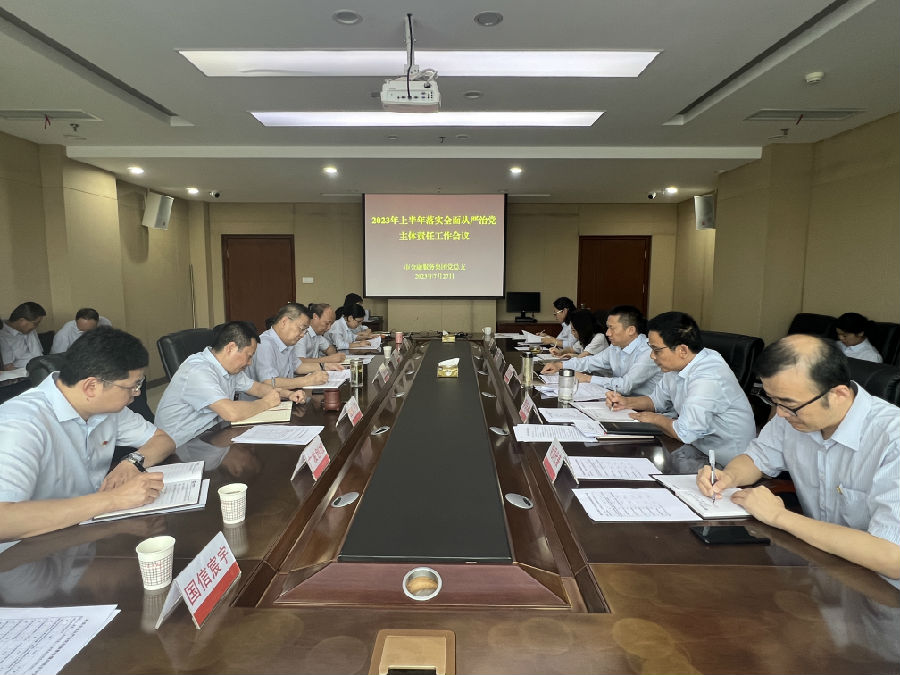 7月27日,市金服集团召开了2023年上半年落实全面从严治党主体责任工作会议。会议由集团党总支副书记、总经理张绍海同志主持,党总支及下属各支部全体委员,党员、职工代表共计30余人参会。