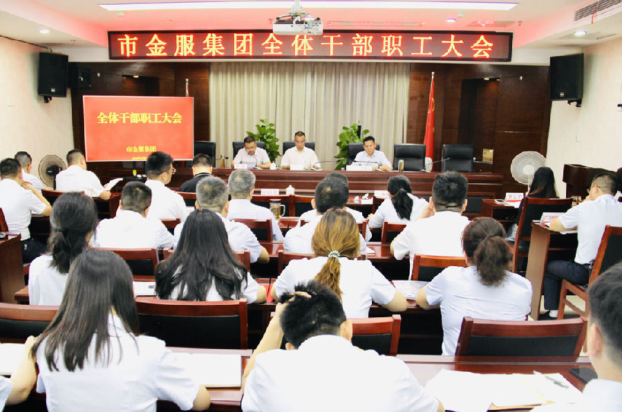 9月11日,市金服集团党总支书记、董事长张绍海主持召开全体干部职工大会。市财政局二级调研员孙曦,机关党委副书记赵俊翔,金融与资本管理科科长朴锦阳,人事科副科长罗云子以及市金服集团全体干部职工出席会议。