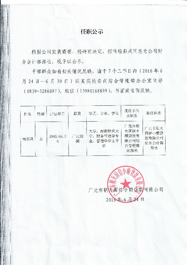 任职公示