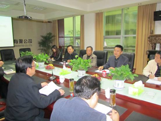 公司党支部书记、董事长、总经理向张康明常委一行汇报公司经营情况和发展规划