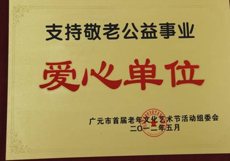 广信担保公司积极支持我市敬老公益事业。2011年5月22日,广元市首届老年文化艺术节在利州区凤冠广场正式启动。我公司积极参与启动活动,精心制作了敬老宣传展板,为启动仪式赠送祝贺标语,为支持我市敬老公益事业贡献力量。为此,广元市首届老年文化艺术节活动组委会向我公司颁发了“支持敬老公益事业爱心单位”奖牌。