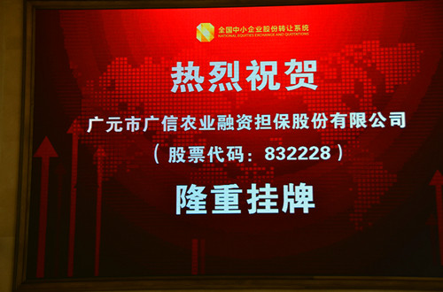 5月22日,市国资委主任、党委副书记肖光林一行参加在全国中小企业股份转让系统有限公司举行的“集体挂牌仪式”。仪式上肖光林主任代表挂牌企业地方领导致辞,市广信担保公司李仕平董事长敲响广信担保的开市宝钟。