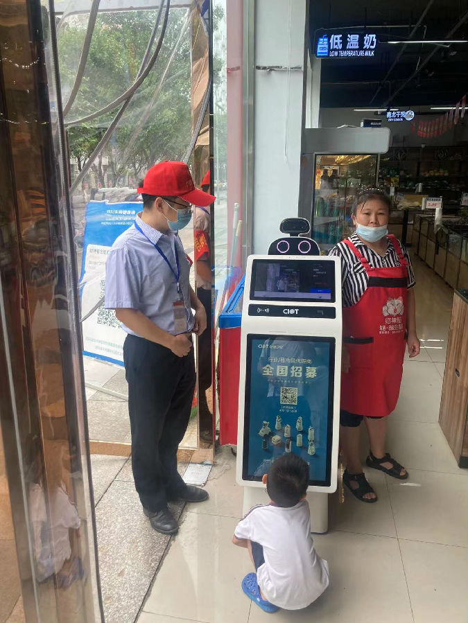 活动期间,志愿服务者开展沿街巡查,向商铺宣传规范摆摊设点,督促临街商铺对店前杂物进行打扫清理,保持环境卫生,劝导乱停乱放车辆规范停车,倡导市民佩戴口罩、进入购物场所扫码亮码,向店铺、商超宣传疫情防控知识等。
